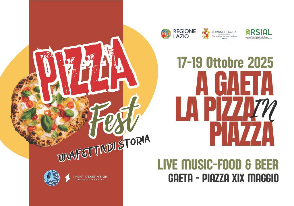 Gaeta, 12 ottobre 2025 – Cresce l’attesa per l’esordio del “Pizza Fest, una fetta di storia” che si terrà in Piazza XIX Maggio a Gaeta dal 17 al 19 ottobre 2025. L’evento, promosso con il supporto cruciale della Regione Lazio e di ARSIAL (Agenzia Regionale per lo Sviluppo e l’Innovazione dell’Agricoltura del Lazio), si preannuncia come un appuntamento di altissimo livello, un vero e proprio omaggio al piatto simbolo della tradizione e della convivialità italiana. Il festival non sarà solo l’occasione per degustare le infinite varianti della pizza, ma un vero e proprio momento di approfondimento culturale, coinvolgendo produttori locali, esperti gastronomici, storici e critici di fama nazionale. L’impegno della Regione Lazio e di ARSIAL è fondamentale per valorizzare le filiere agroalimentari e le eccellenze DOP e IGP del territorio, confermando Gaeta come polo attrattivo anche dal punto di vista enogastronomico. Non mancherà, infatti, uno spazio speciale dedicato alla Tiella di Gaeta, regina della gastronomia locale e simbolo culinario della città. La manifestazione si articola in tre giornate dense di appuntamenti, con dibattiti, masterclass e intrattenimento serale.